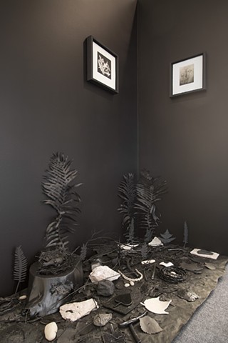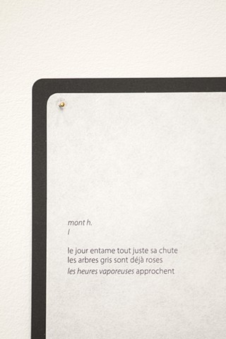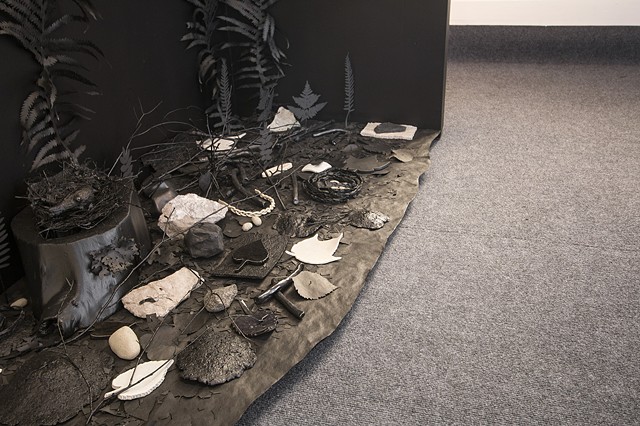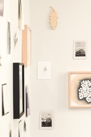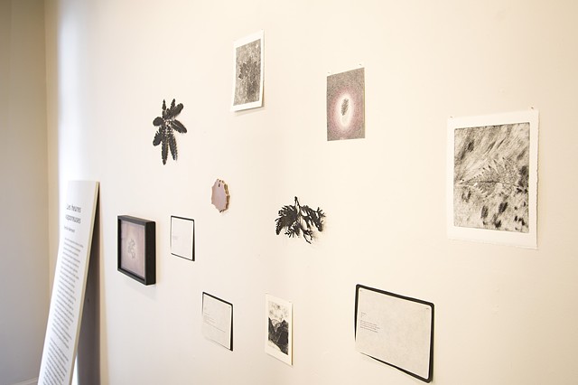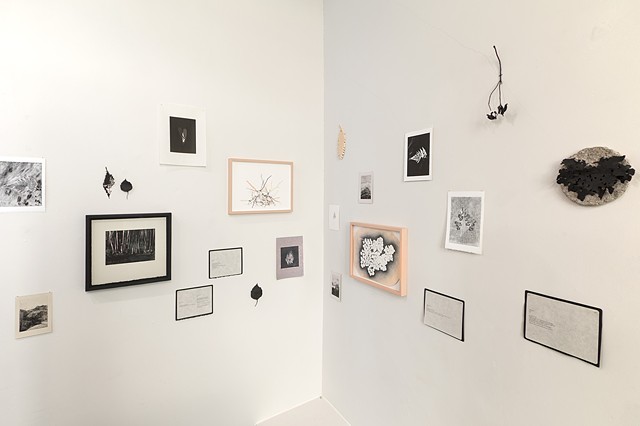 dessins (crayon graphite, aquarelle, crayon de couleur et pastel sec), gravures (eaux-fortes et aquatintes), monotypes, impressions jet d'encre sur papier japonais, objets fabriqués (céramique, plâtre, papier varié, pâte de papier, bois, encre de chine, fil de polyester), objets naturels transformés ou non (roches, branches, plantes, feuilles, peinture acrylique), textes sur papier japonais, livres d'artiste, constructions de bois